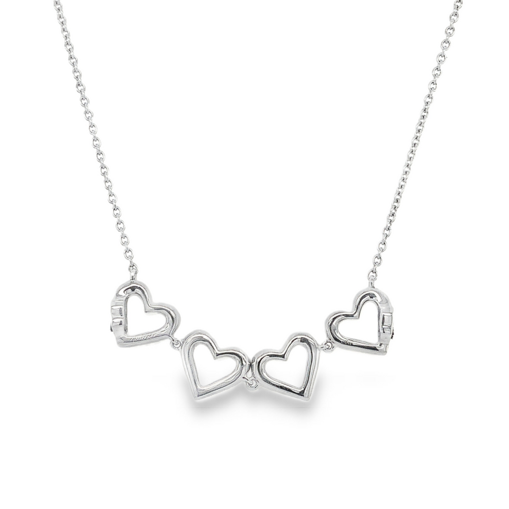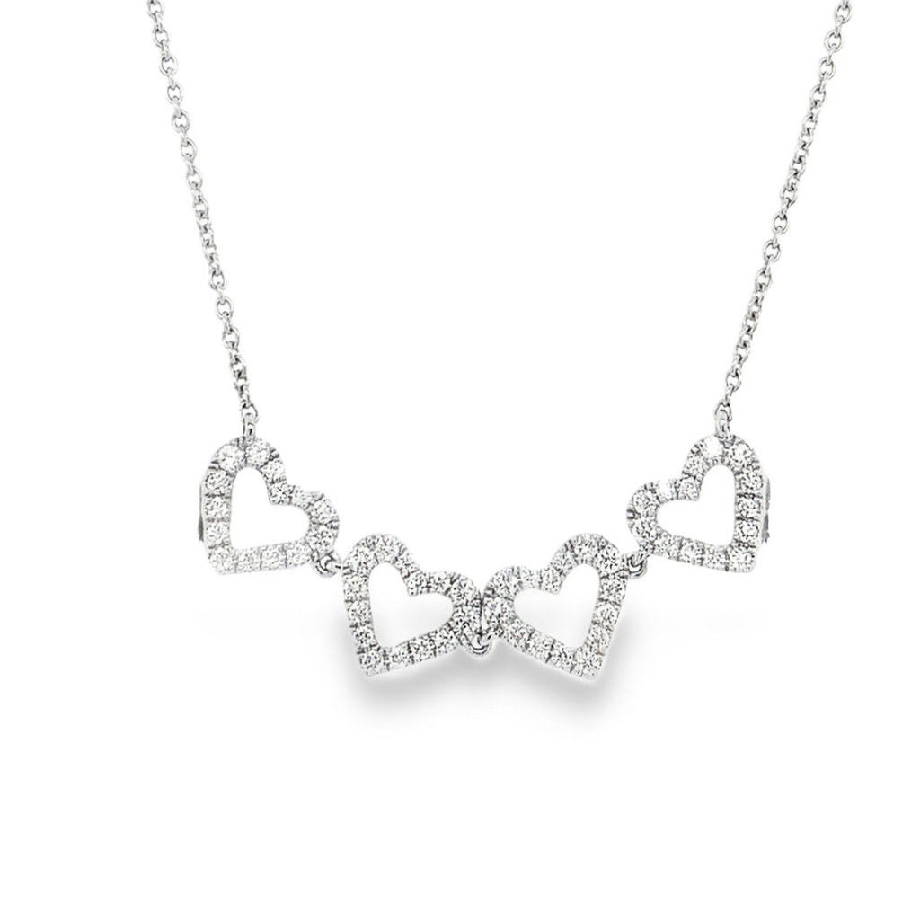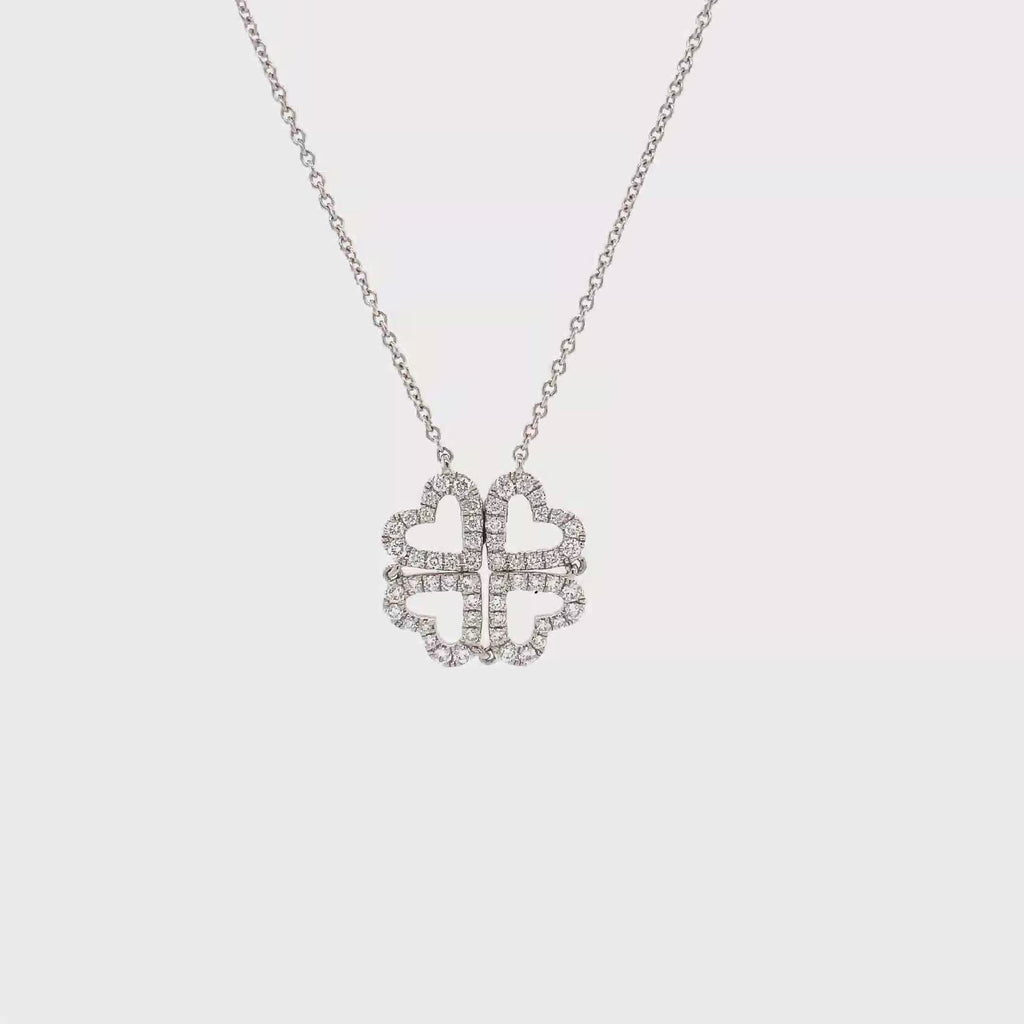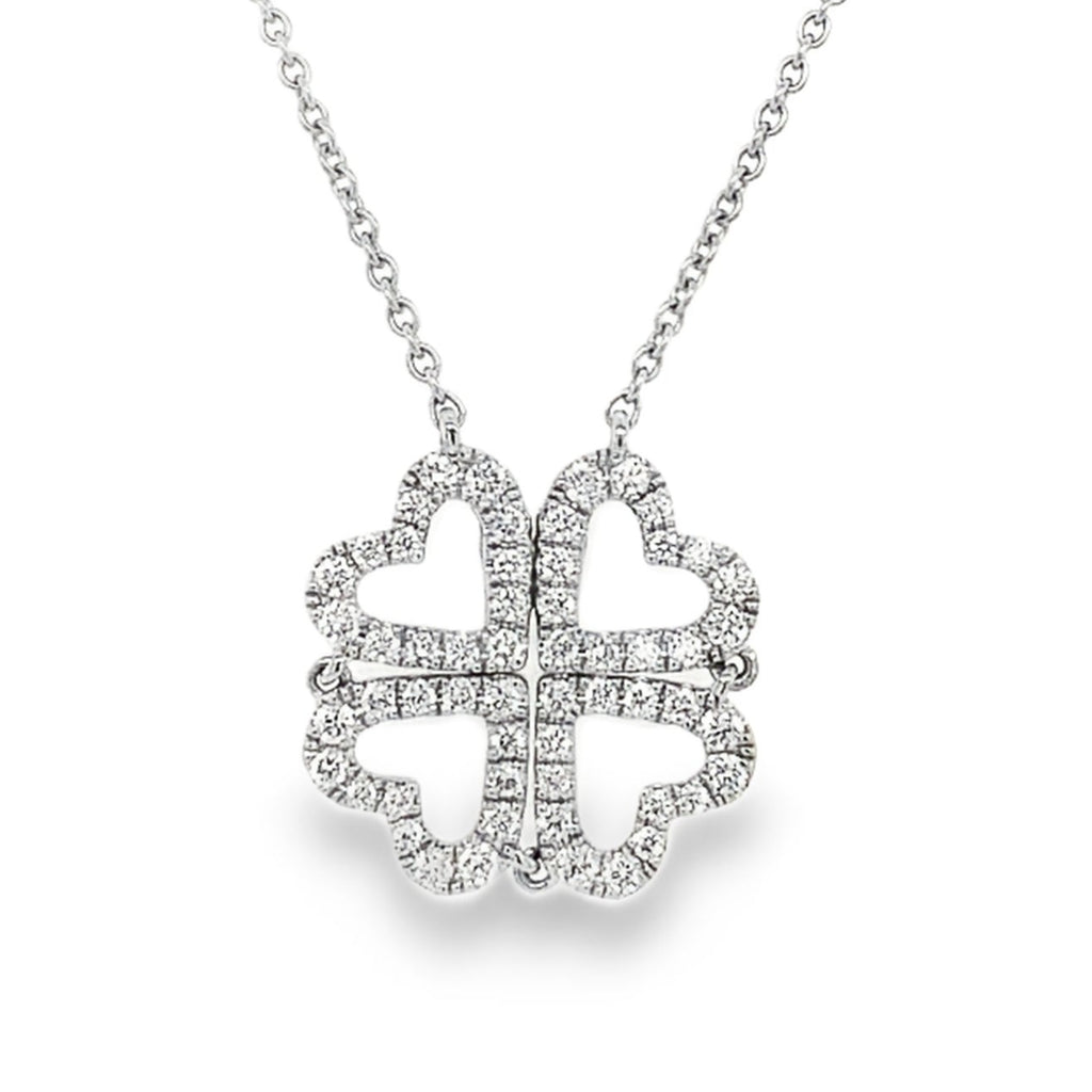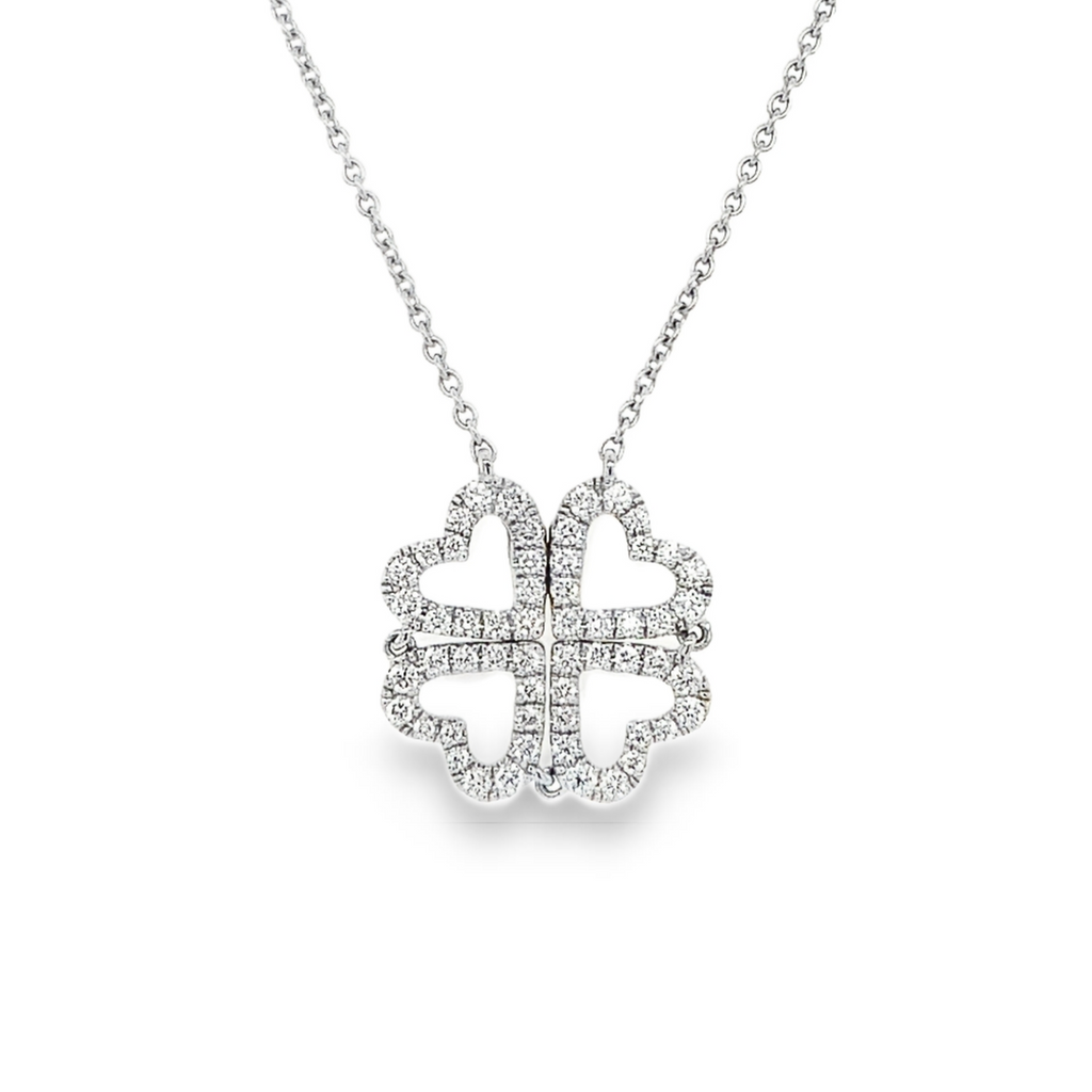 Diamond Magnetic Pull-Apart Clover Heart Necklace Set in 18K White Gold.