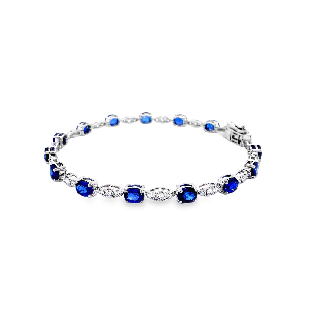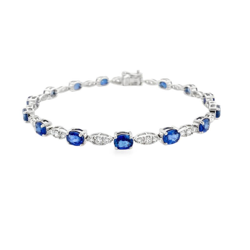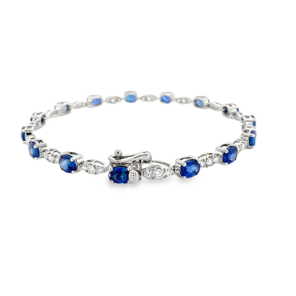 This bracelet contains 15 Oval Shaped Blue Sapphires with a total weight of 6.76 cts.