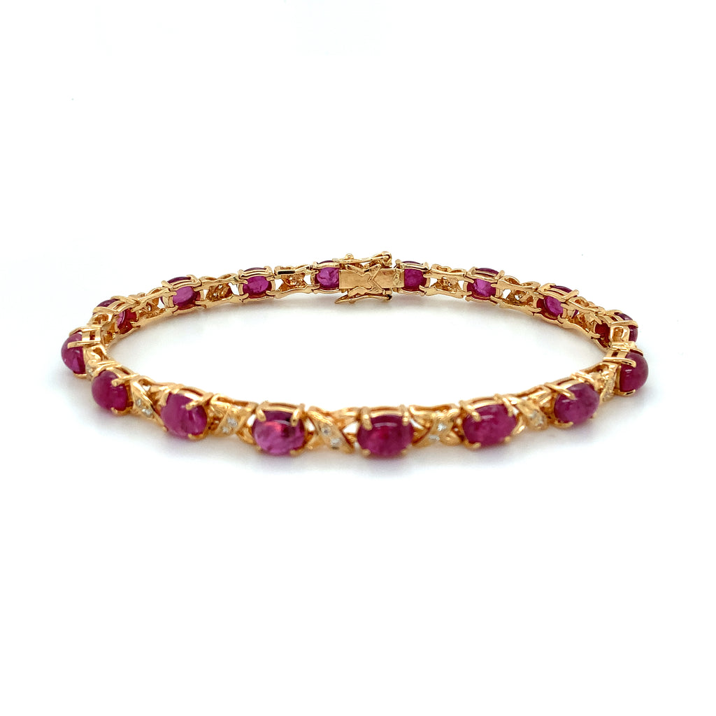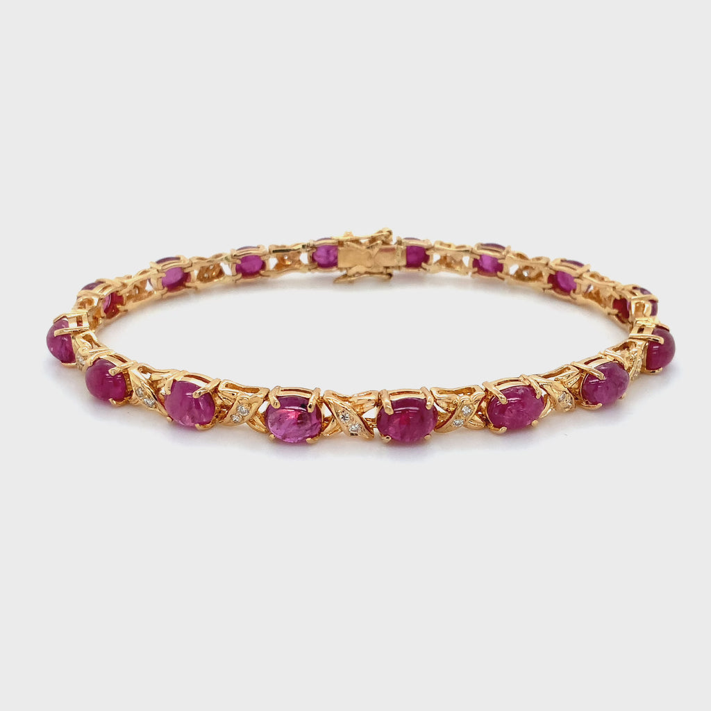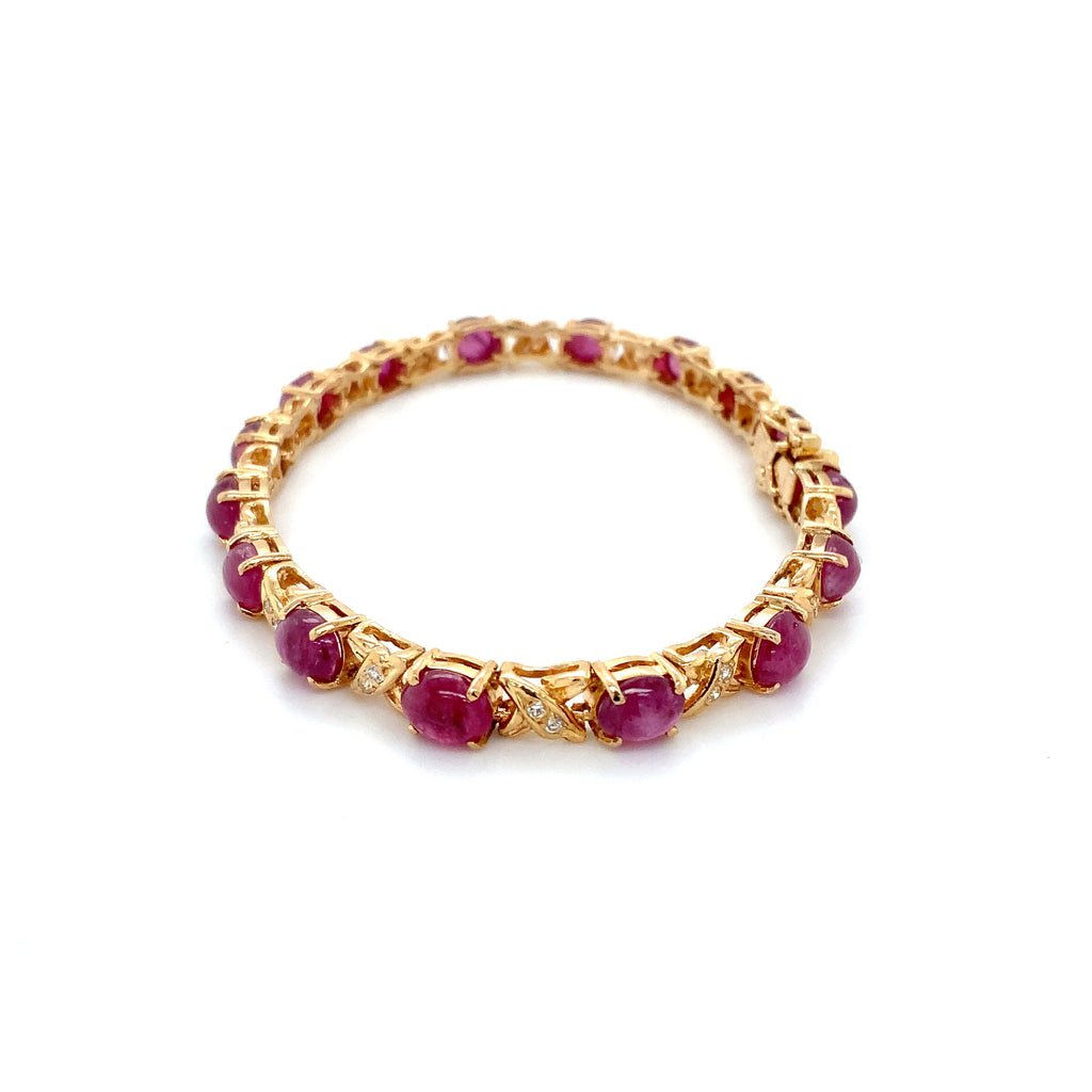 Vintage Cabochon Ruby and Diamond Link Bracelet set in 18K Yellow Gold
