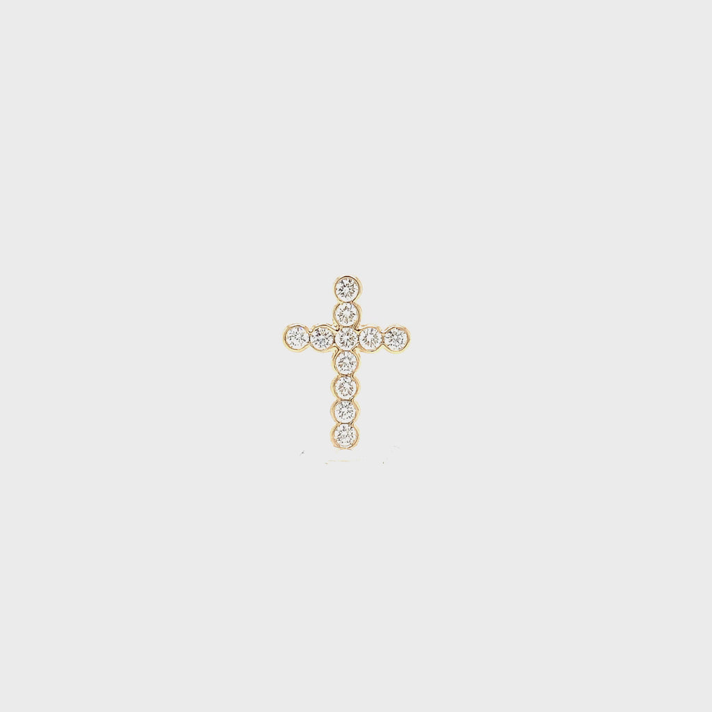 Roman + Jules Contemporary Semi-Bezel Set 11 Round Brilliant Cut Diamond Cross 0.50 ctw 14K Yellow Gold with hidden bail. The diamonds are G color and SI1 clarity