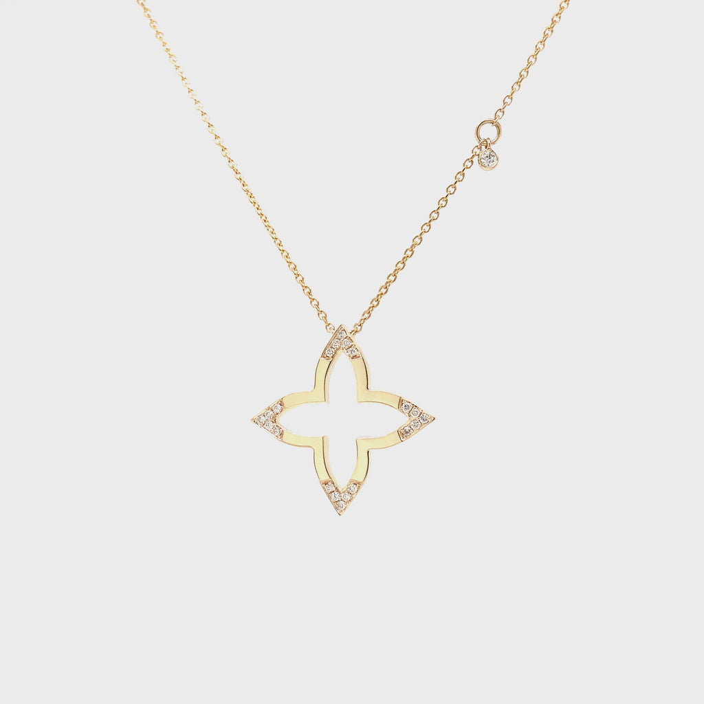 Roman + Jules Open Clover Diamond and 14K Yellow Gold Necklace with 1 bezel set diamond charm on 18" Adjustable Cable Chain with lobster clasp