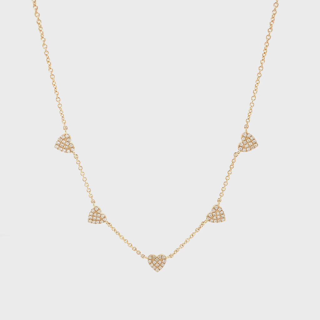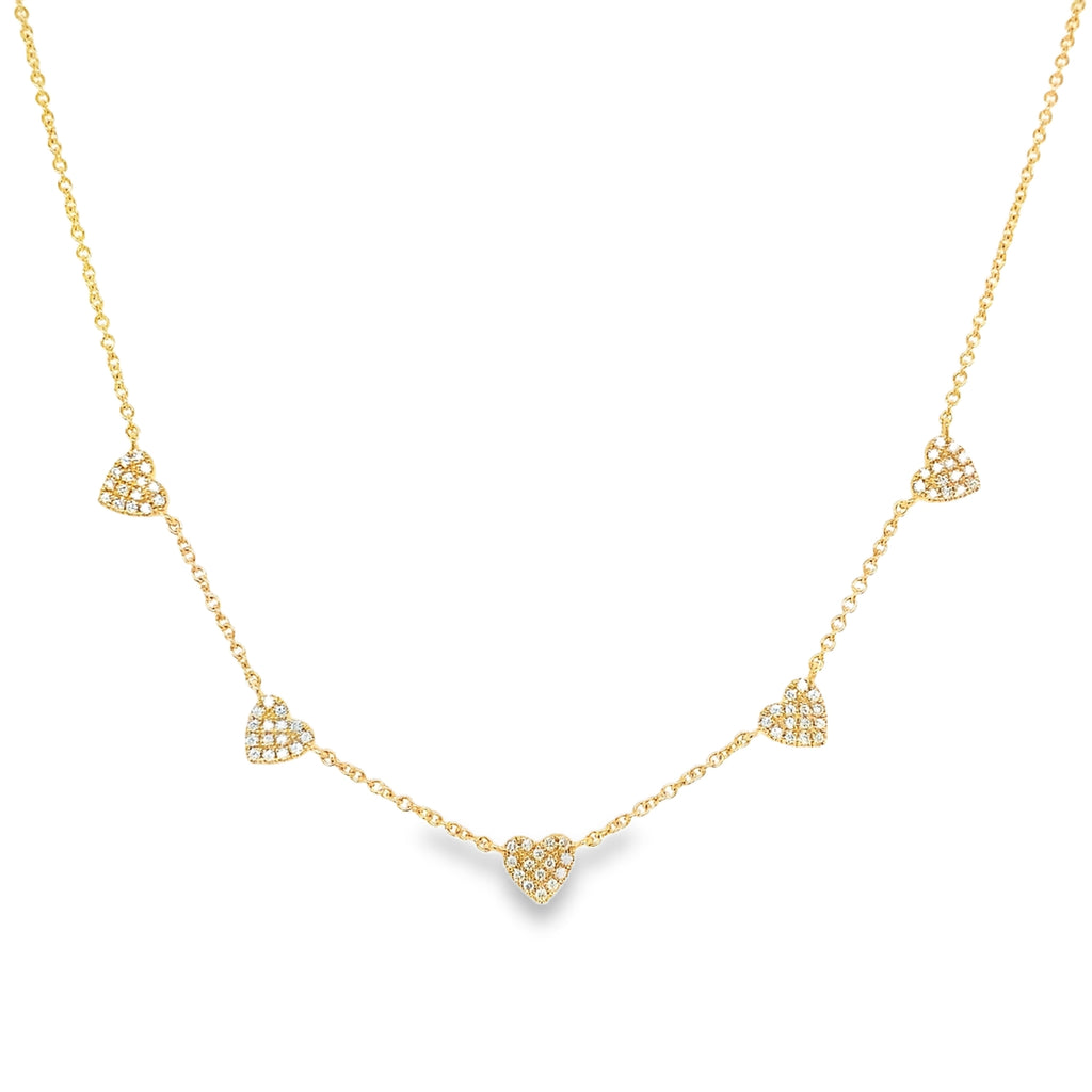 Roman + Jules Station Pave Heart Diamond Necklace set in 14K Yellow GoldDiamonds = 0.20 ctw. G color and SI clarity3.2 grams in weight Adjustable 18" Chain with lobster clasp