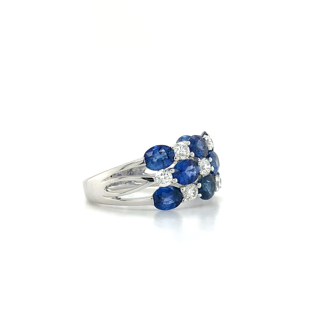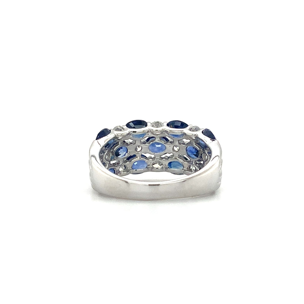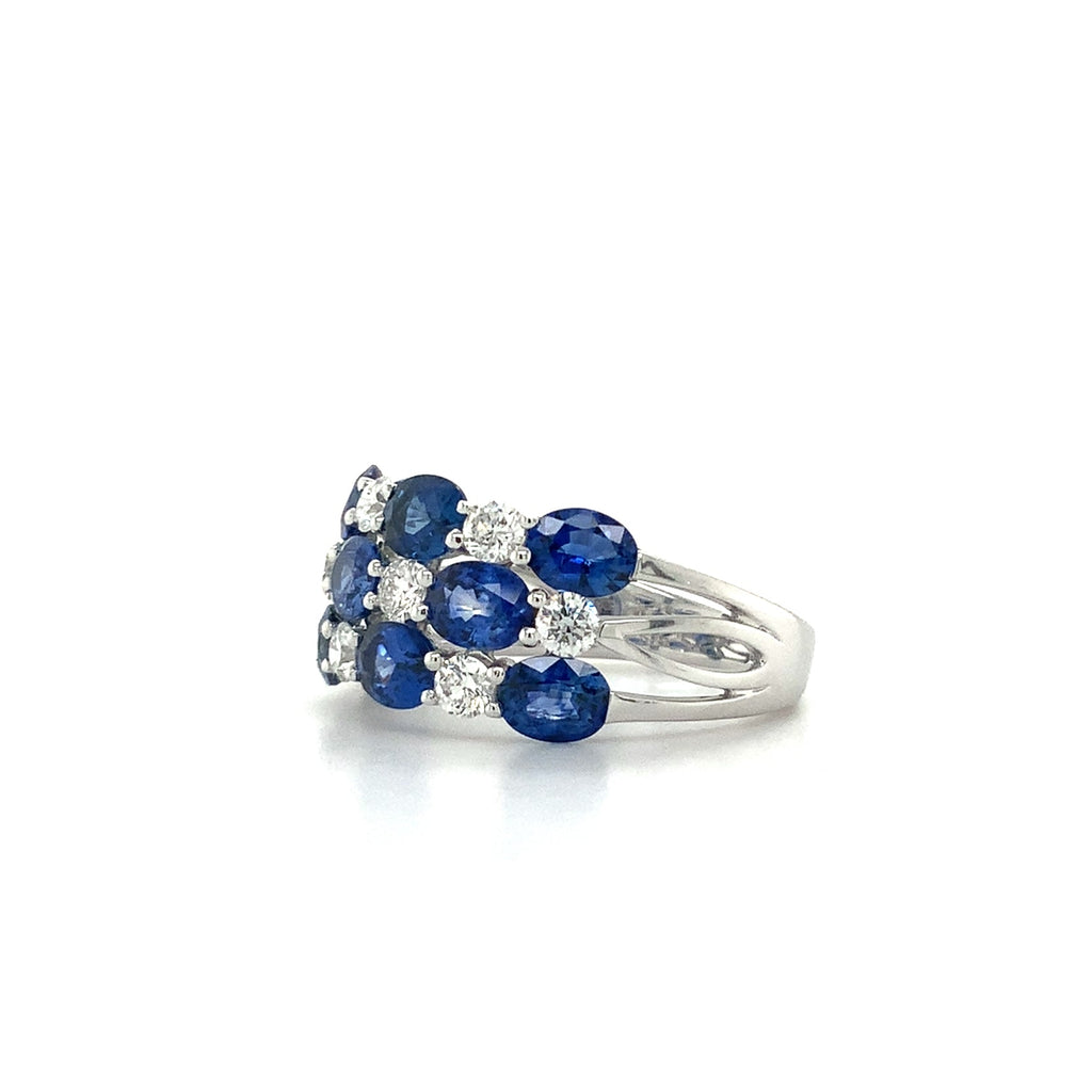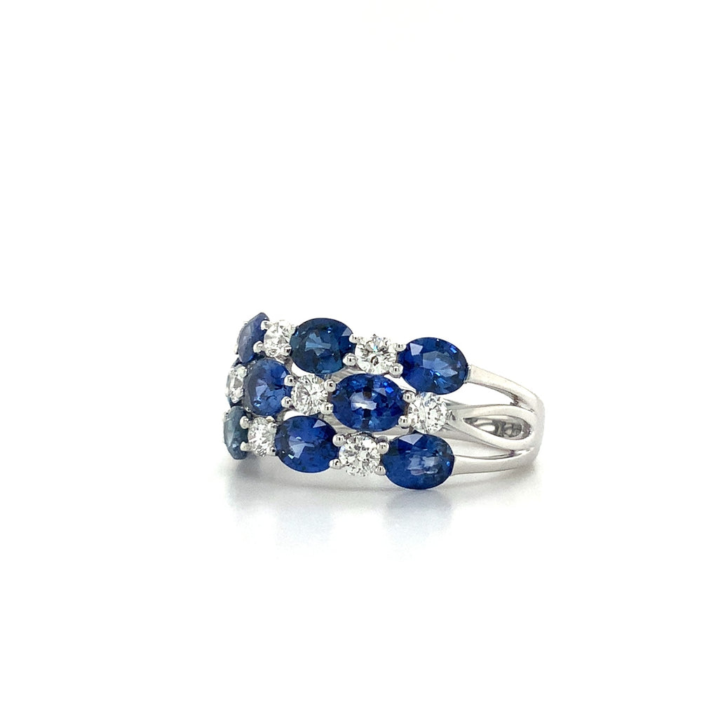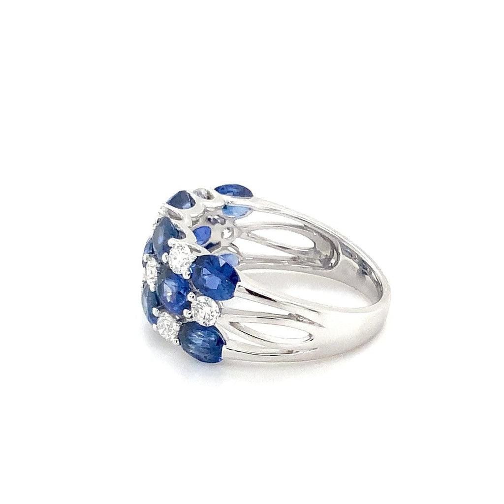 This Ring contains 11 oval-shaped Bright Blue Sapphires with a total weight of 3.49 cts