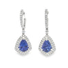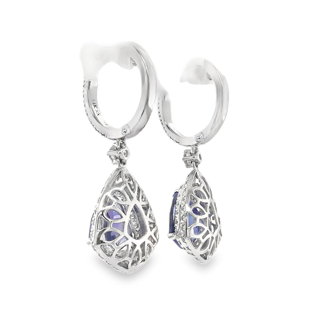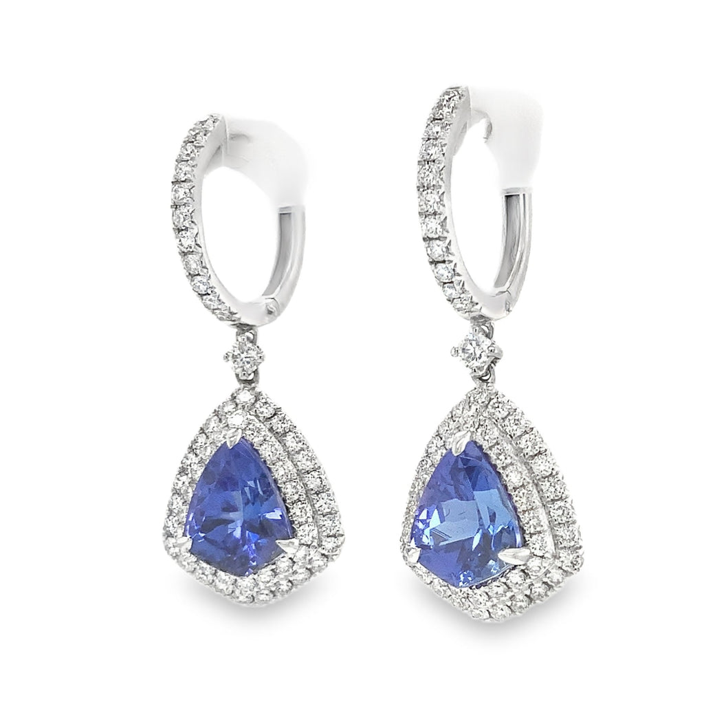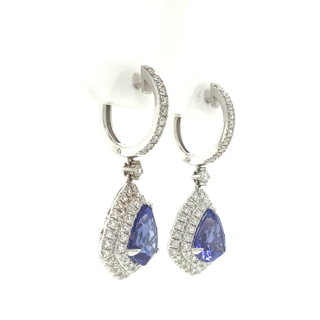 Mixed Cut Trapezoid Tanzanite and Diamond Drop Earrings set in 18K White Gold
