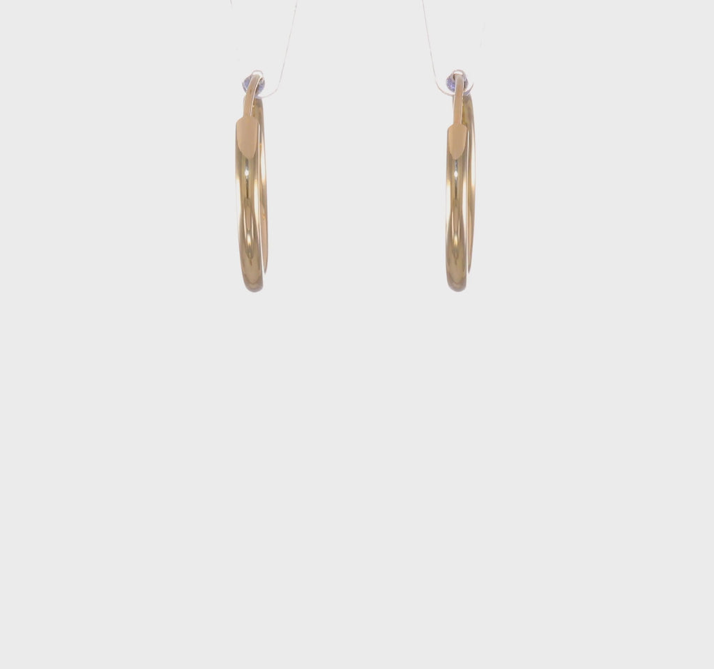 Polished Round Endless Tube Hoop Earrings in 14K Yellow GoldThe dimensions are 2 x 25 mm, and they weigh 1.2 grams.