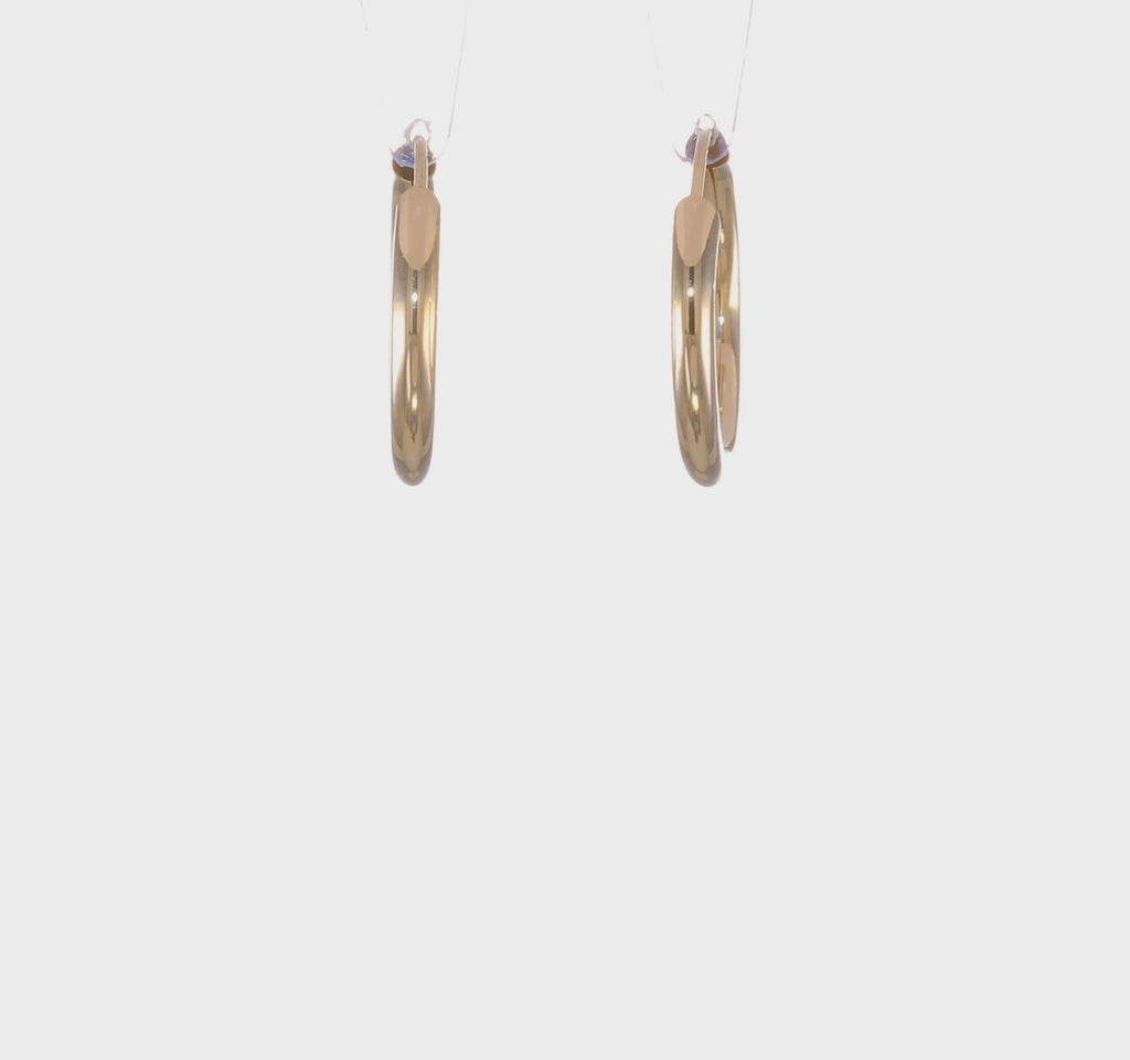 Polished Round Endless Tube Hoop Earrings in 14K Yellow GoldThe dimensions are 3 x 20 mm, and they weigh 1.2 grams.