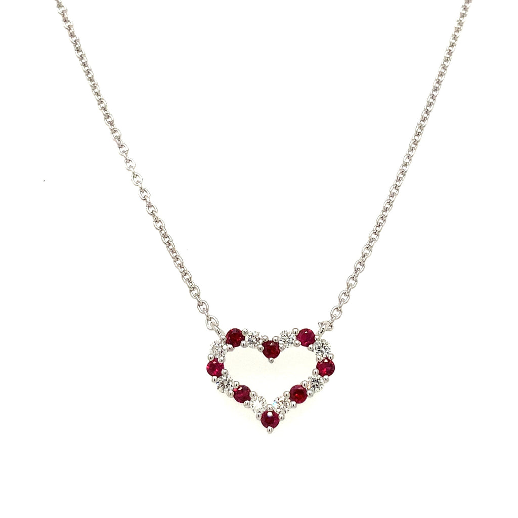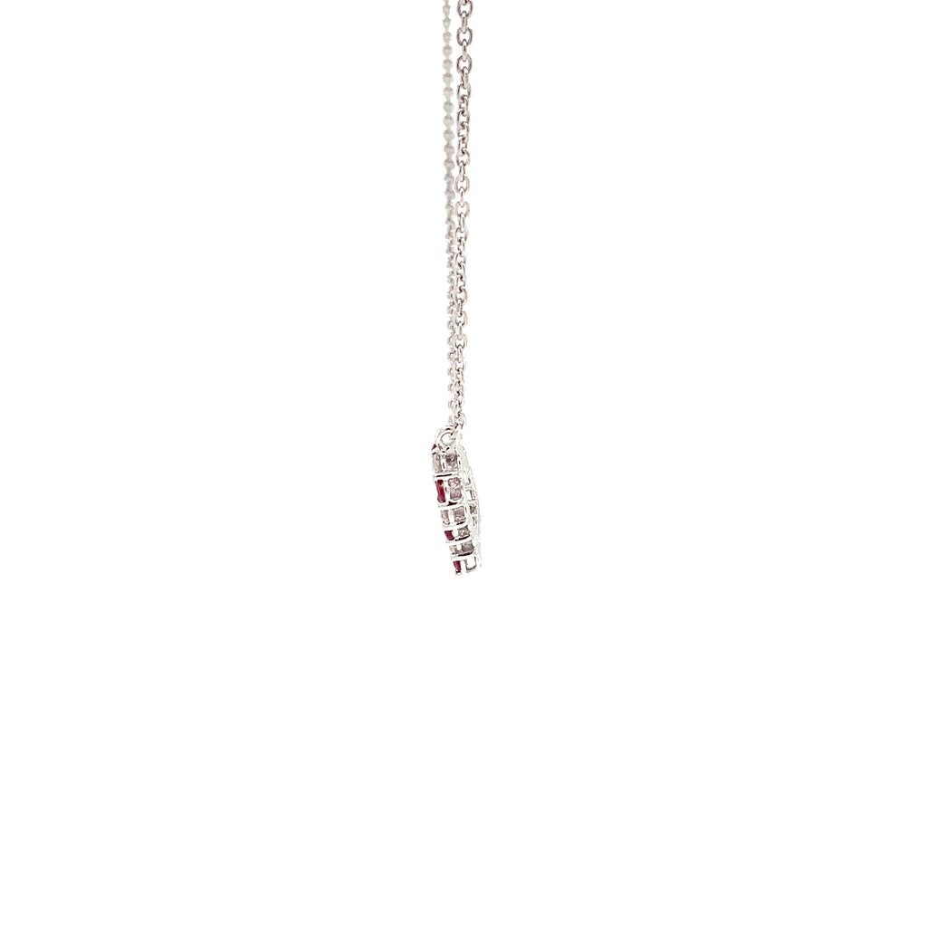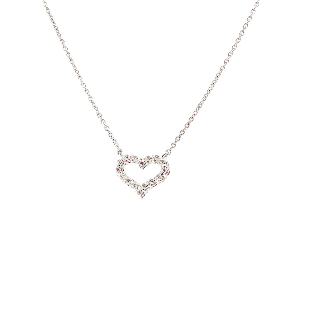 Roman+Jules Small Heart Shape Diamond and Ruby Necklace set in 14K White Gold