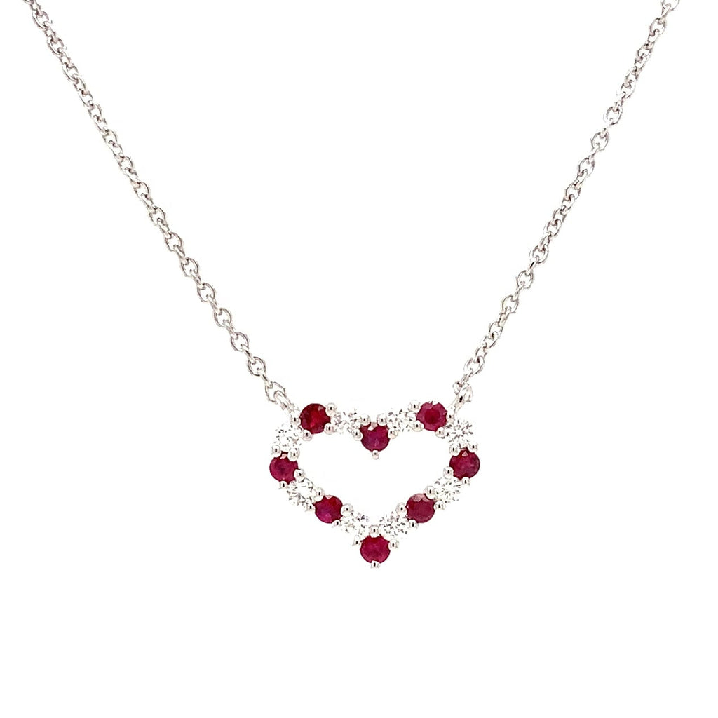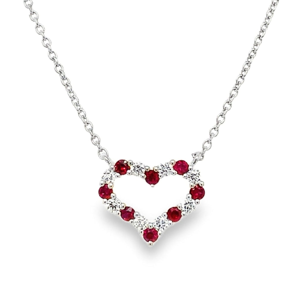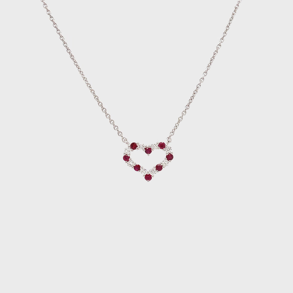 Roman+Jules Small Heart Shape Diamond and Ruby Necklace set in 14K White Gold