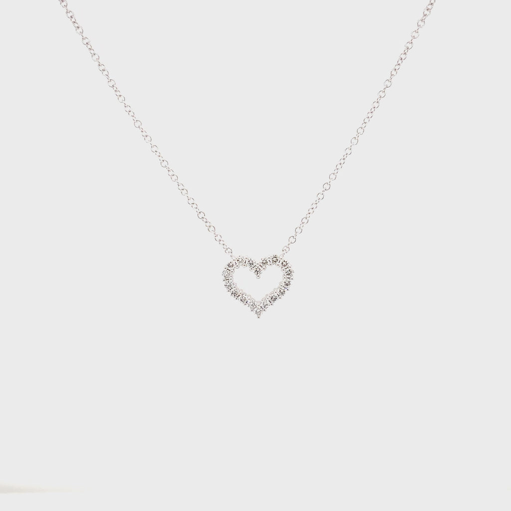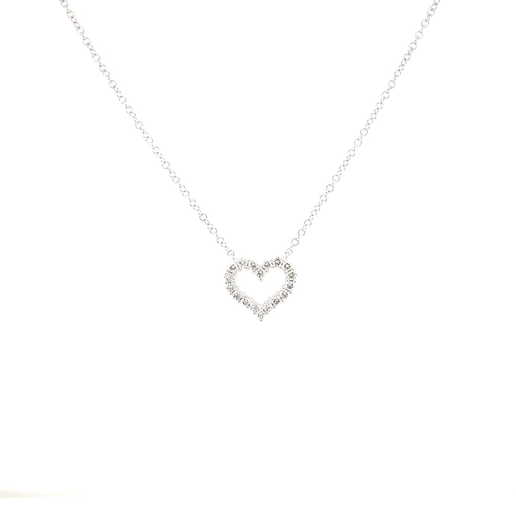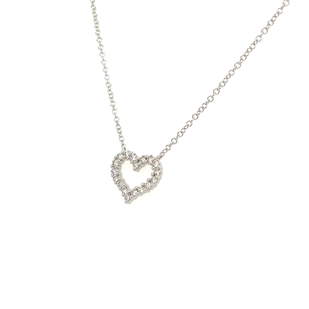 Roman+Jules Small Heart Shape Diamond Necklace set in 14K White Gold.
