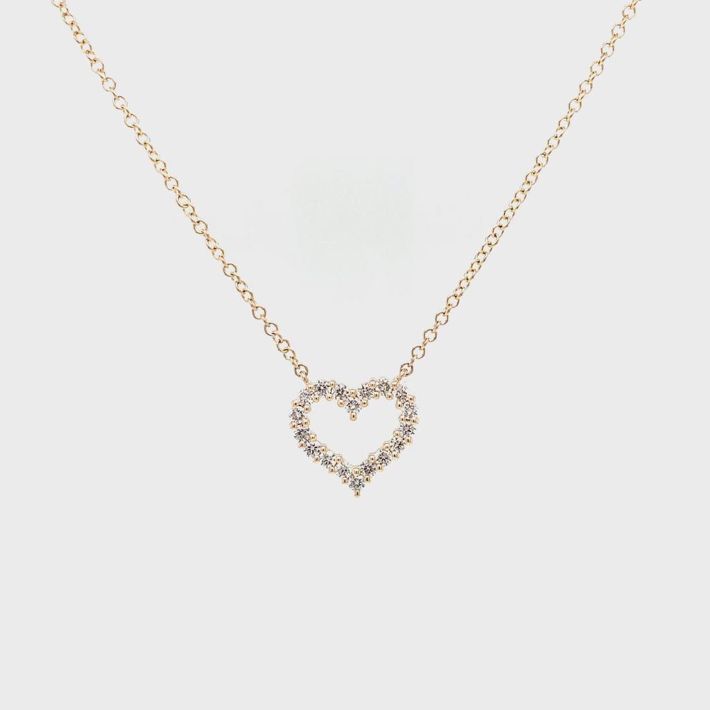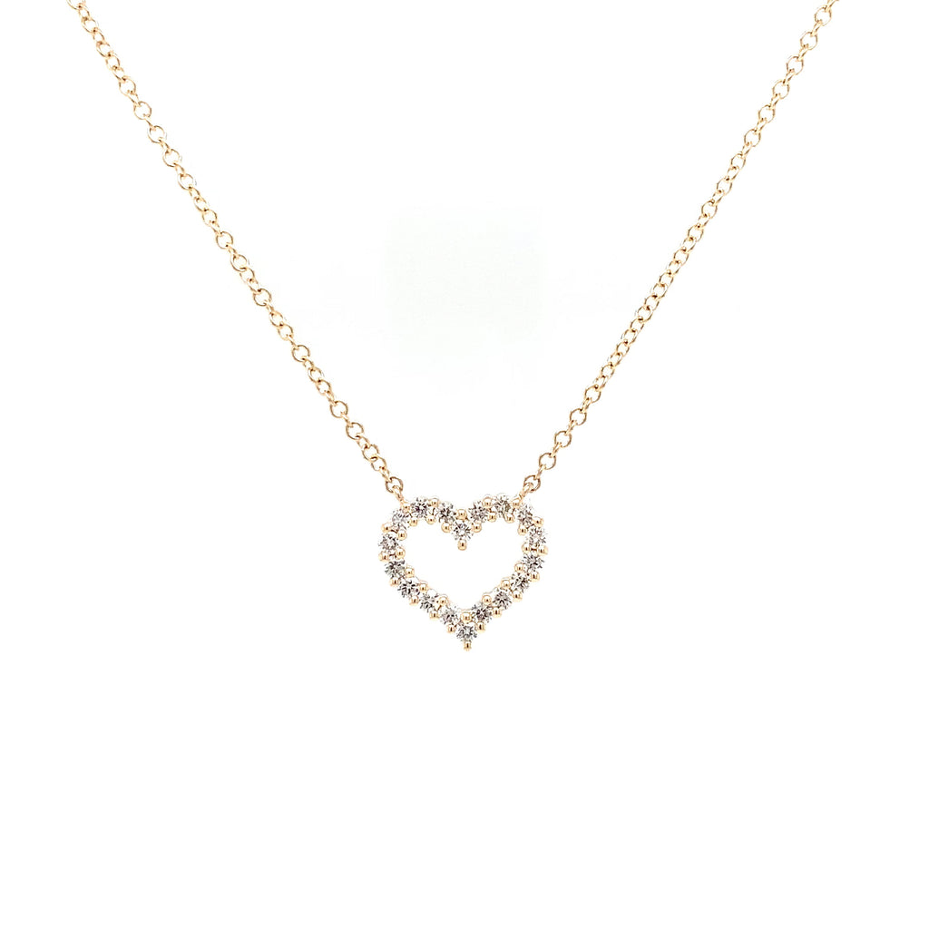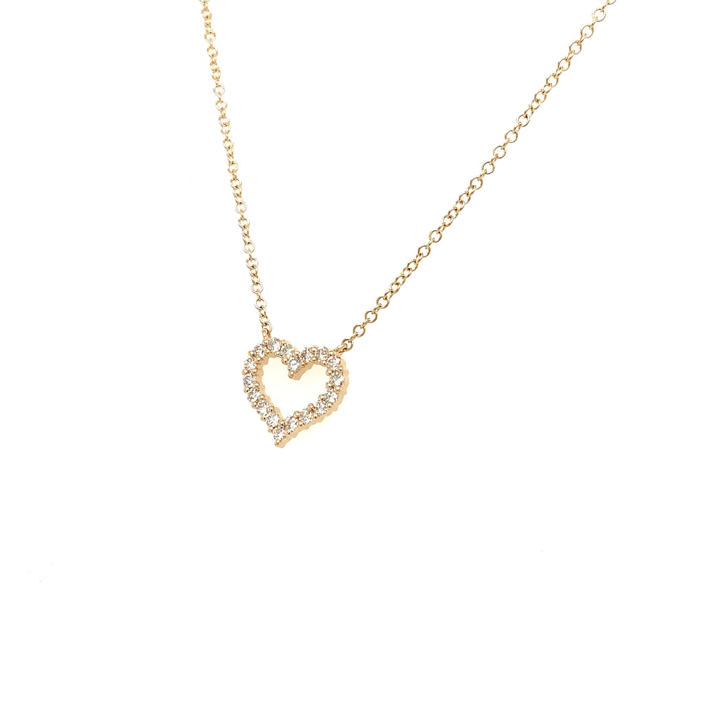 Roman+Jules Small Heart Shape Diamond Necklace set in 14K Yellow Gold.