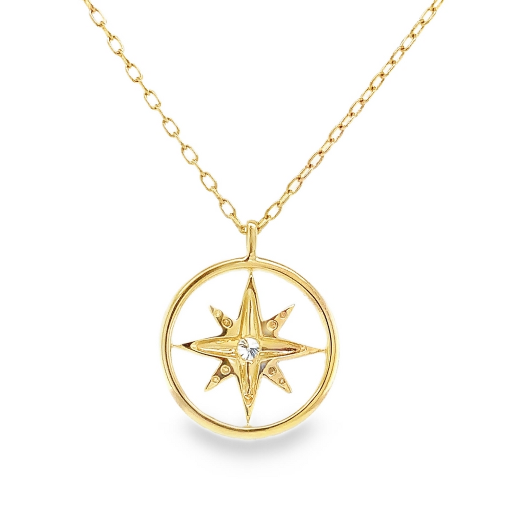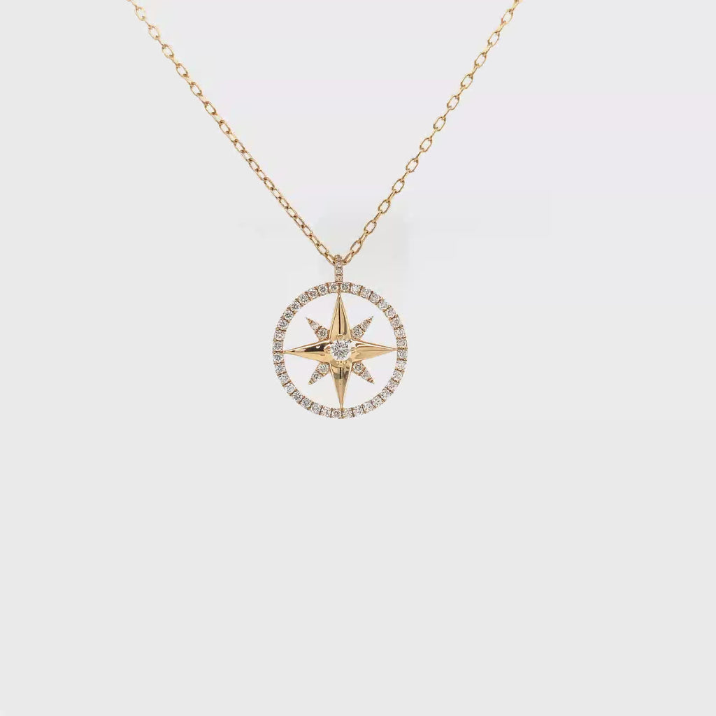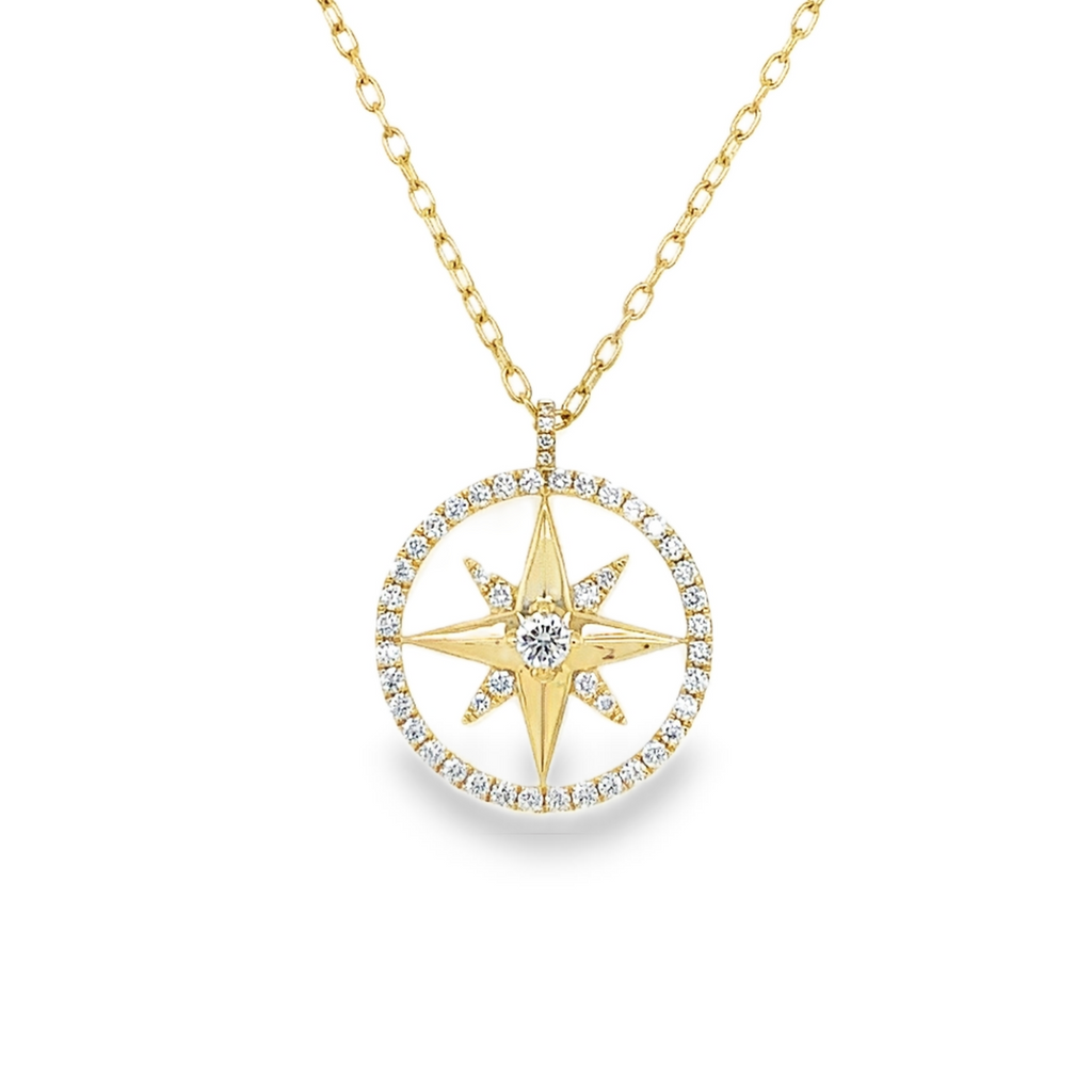 Diamond Compass Pendant 0.30ct Set in 18k Yellow Gold