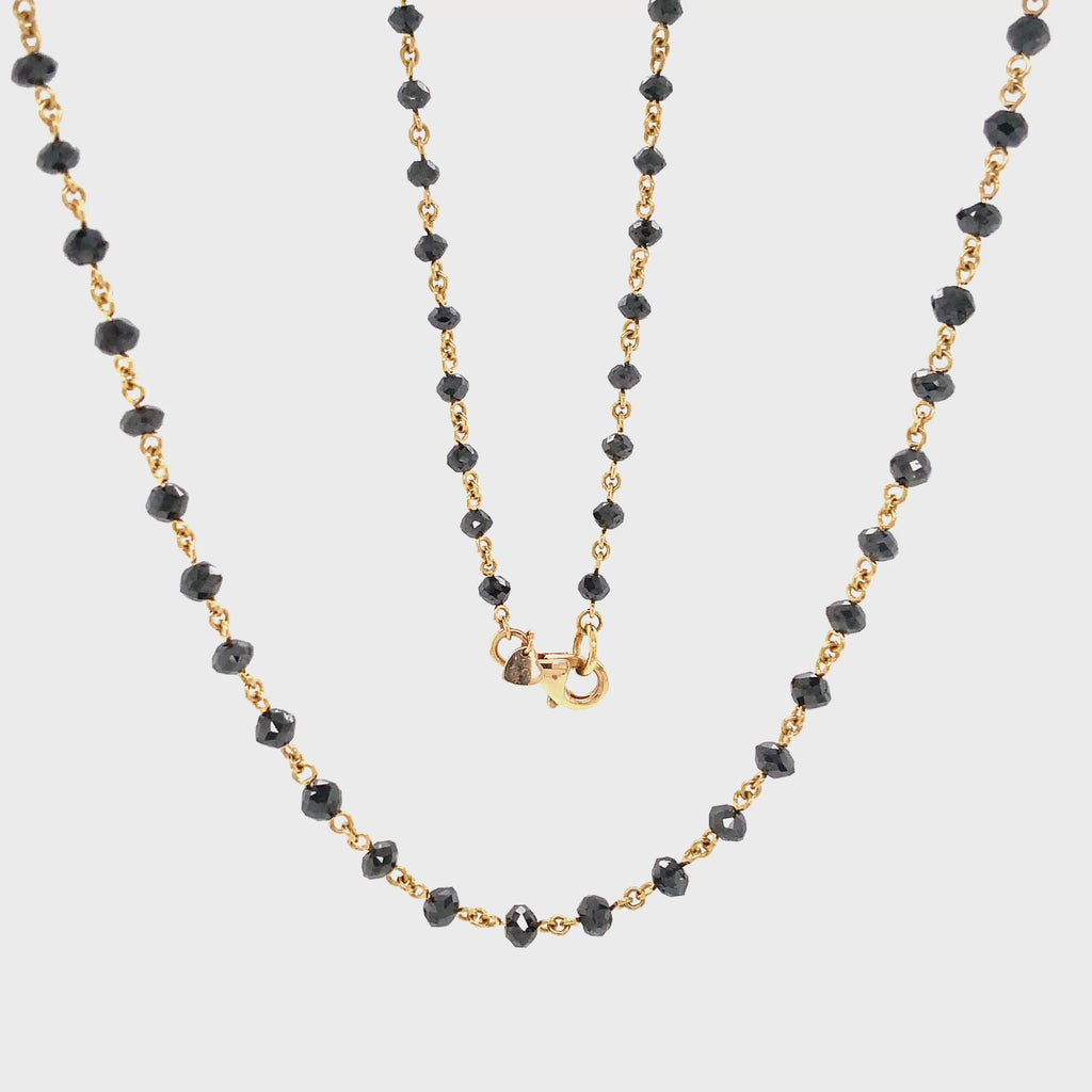Black Diamond Beads Necklace set in 18K Yellow Gold
