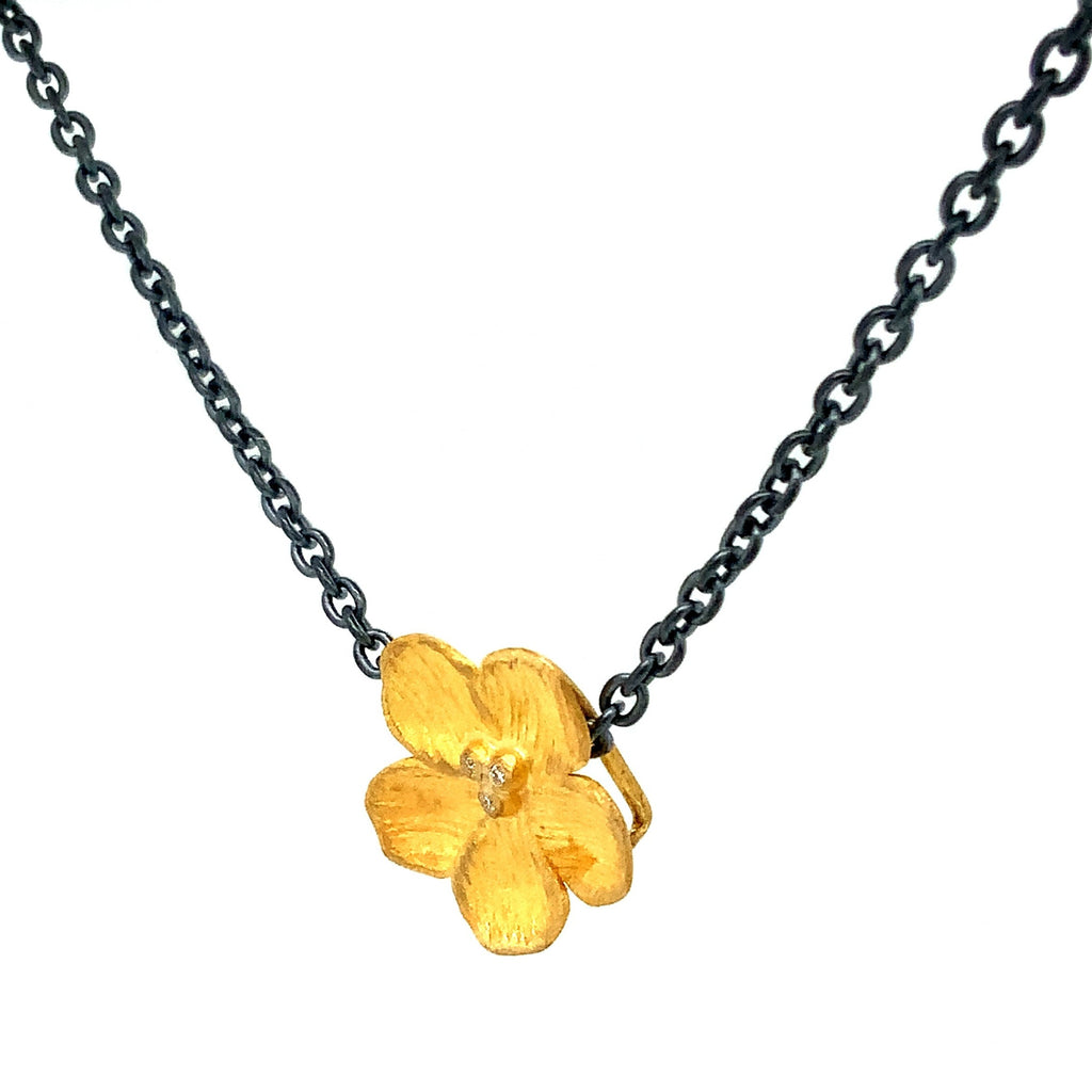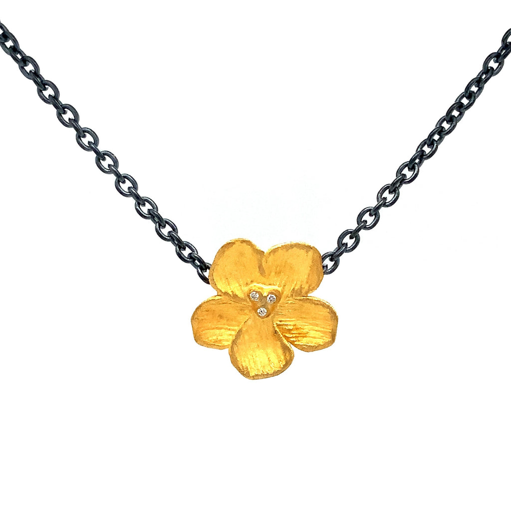 The Lika Behar Pure Love Deserves Pure Gold Collection 22K Gold “Buttercup” Pendant is designed to promote love.