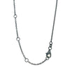 Measuring 15mm in diameter and featuring a 0.02-carat diamond, this pendant is crafted from oxidized sterling silver and paired with an 18-inch adjustable chain that includes a lobster clasp, weighing 5.6 grams. A matching earring is also available.