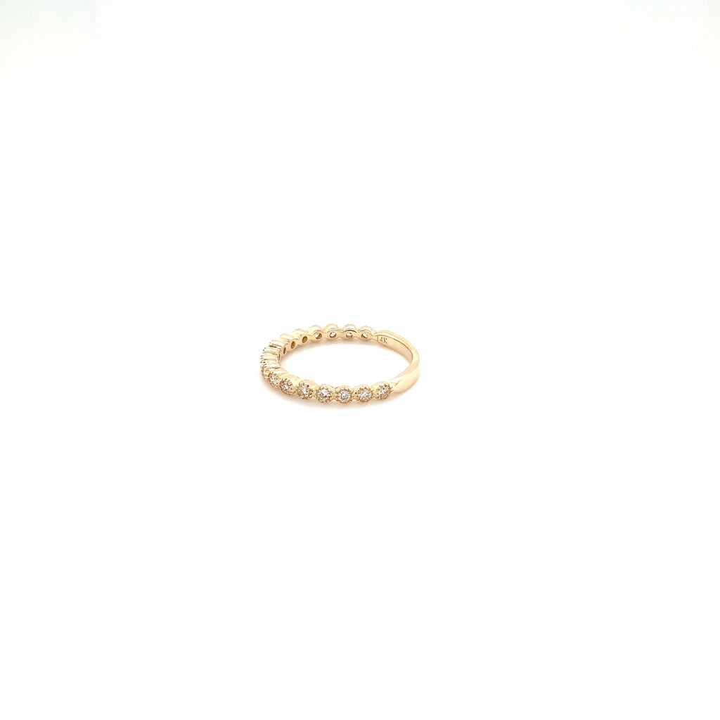 Milgrain Bezel Set Diamond Band set in 14 Karat Yellow Gold, Milgrained Bezel set.